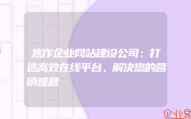 - 焦作企业网站建设公司:打造高效在线平台,解决您的营销难题