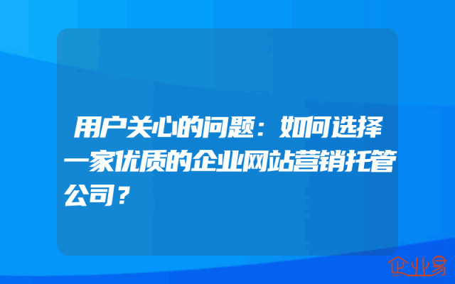 - 用户关心的问题:如何选择一家优质的企业网站营销托管公司?