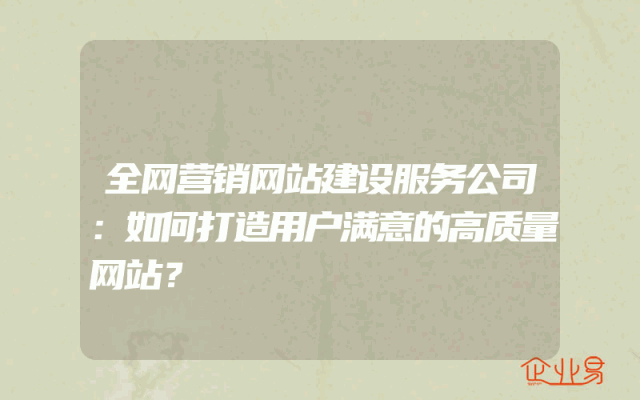 - 全网营销网站建设服务公司:如何打造用户满意的高质量网站?