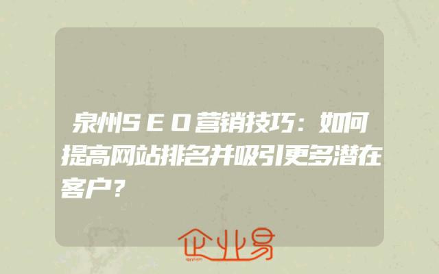 - 泉州SEO营销技巧:如何提高网站排名并吸引更多潜在客户?