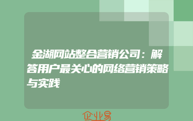 - 金湖网站整合营销公司:解答用户最关心的网络营销策略与实践