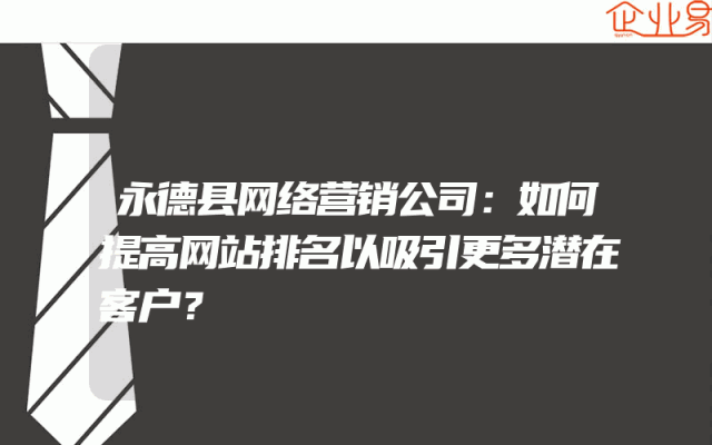 - 永德县网络营销公司:如何提高网站排名以吸引更多潜在客户?