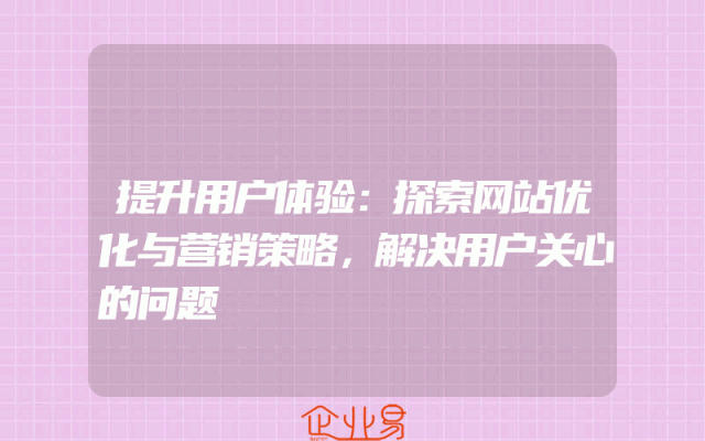 - 提升用户体验:探索网站优化与营销策略,解决用户关心的问题