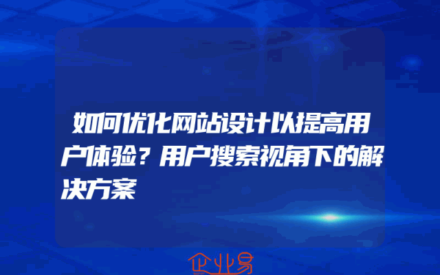- 如何优化网站设计以提高用户体验?用户搜索视角下的解决方案