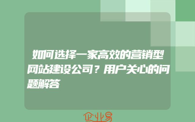 - 如何选择一家高效的营销型网站建设公司?用户关心的问题解答