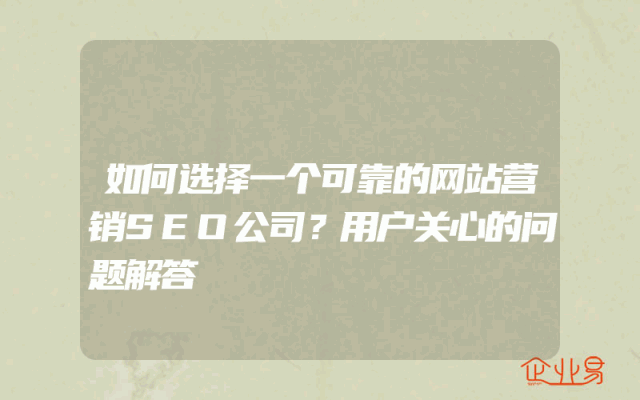 - 如何选择一个可靠的网站营销SEO公司?用户关心的问题解答