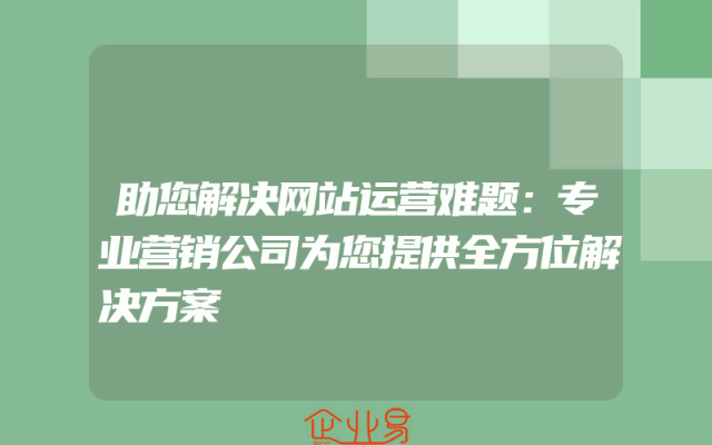 - 助您解决网站运营难题:专业营销公司为您提供全方位解决方案