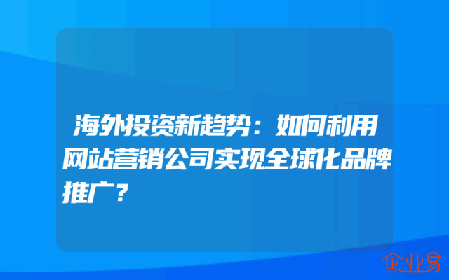 - 海外投资新趋势:如何利用网站营销公司实现全球化品牌推广?