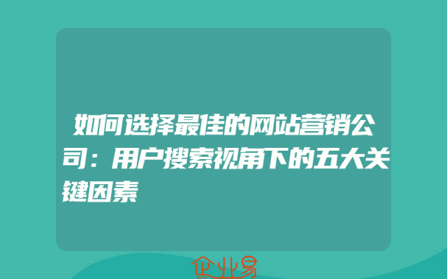- 如何选择最佳的网站营销公司:用户搜索视角下的五大关键因素