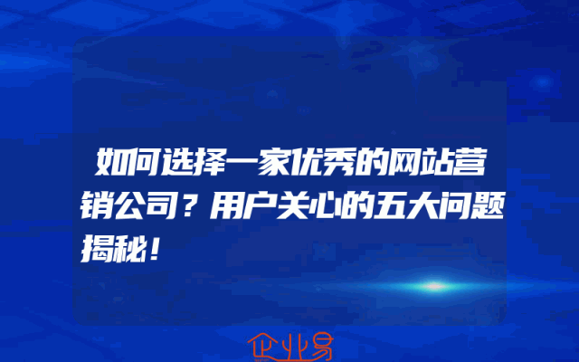 - 如何选择一家优秀的网站营销公司?用户关心的五大问题揭秘!