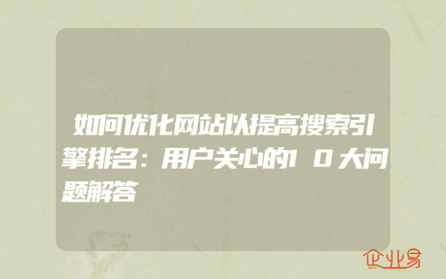 - 如何优化网站以提高搜索引擎排名:用户关心的10大问题解答