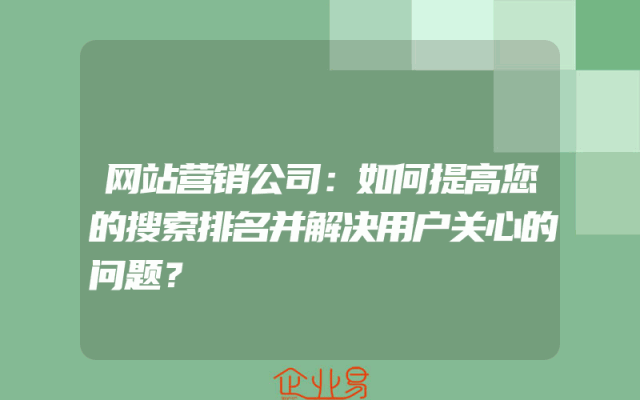 - 网站营销公司:如何提高您的搜索排名并解决用户关心的问题?