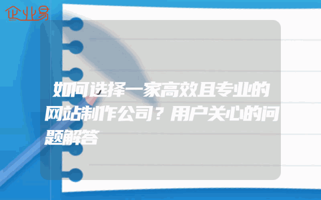 - 如何选择一家高效且专业的网站制作公司?用户关心的问题解答