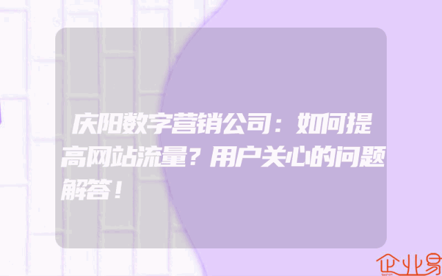 - 庆阳数字营销公司:如何提高网站流量?用户关心的问题解答!