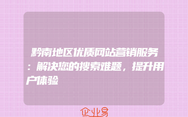 - 黔南地区优质网站营销服务:解决您的搜索难题,提升用户体验