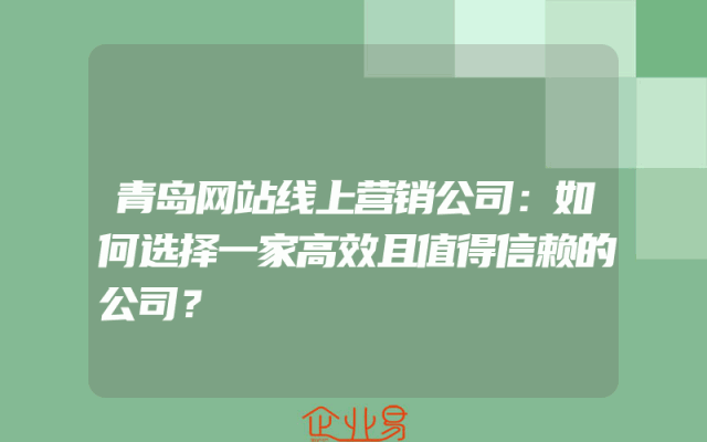 - 青岛网站线上营销公司:如何选择一家高效且值得信赖的公司?