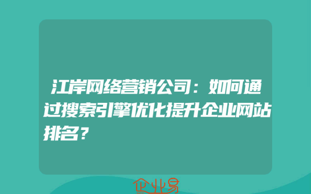 - 江岸网络营销公司:如何通过搜索引擎优化提升企业网站排名?