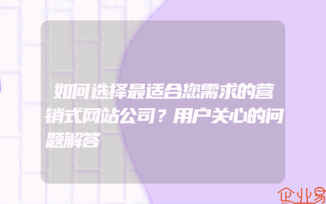 - 如何选择最适合您需求的营销式网站公司?用户关心的问题解答