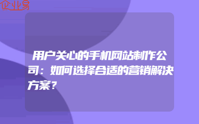 - 用户关心的手机网站制作公司:如何选择合适的营销解决方案?
