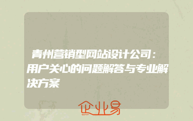 - 青州营销型网站设计公司:用户关心的问题解答与专业解决方案