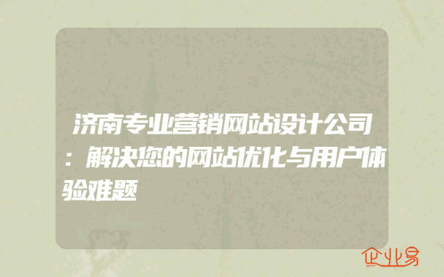 - 济南专业营销网站设计公司:解决您的网站优化与用户体验难题