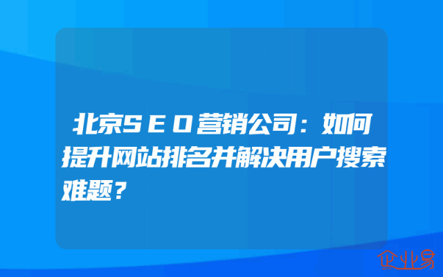 - 北京SEO营销公司:如何提升网站排名并解决用户搜索难题?