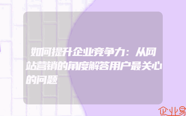 - 如何提升企业竞争力:从网站营销的角度解答用户最关心的问题