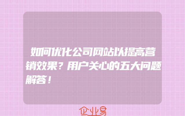 - 如何优化公司网站以提高营销效果?用户关心的五大问题解答!
