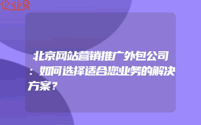 - 北京网站营销推广外包公司:如何选择适合您业务的解决方案?