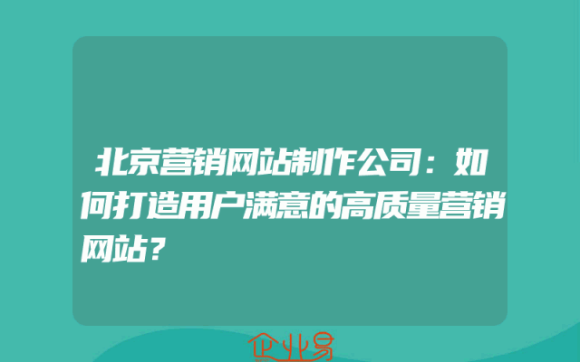 - 北京营销网站制作公司:如何打造用户满意的高质量营销网站?