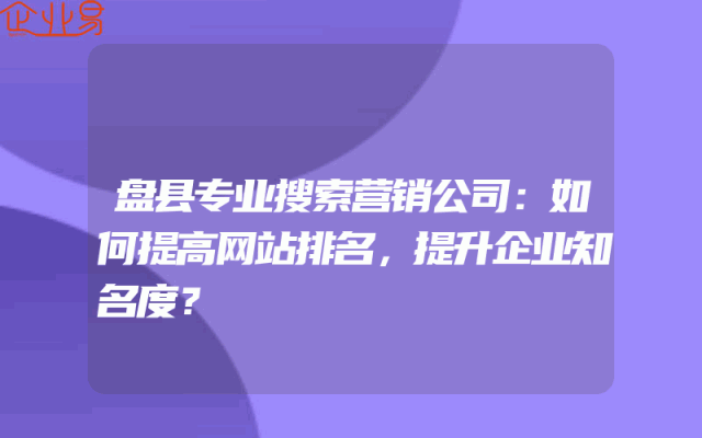 - 盘县专业搜索营销公司:如何提高网站排名,提升企业知名度?