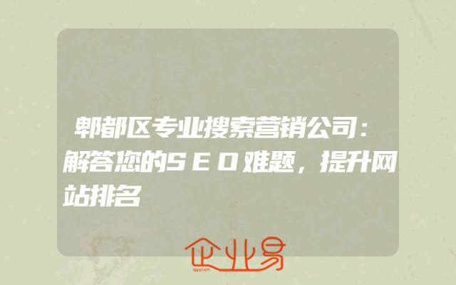 - 郫都区专业搜索营销公司:解答您的SEO难题,提升网站排名