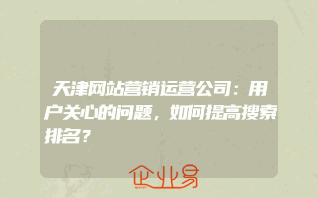 - 天津网站营销运营公司:用户关心的问题,如何提高搜索排名?