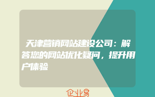 - 天津营销网站建设公司:解答您的网站优化疑问,提升用户体验