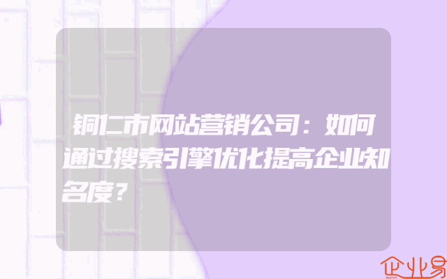 - 铜仁市网站营销公司:如何通过搜索引擎优化提高企业知名度?