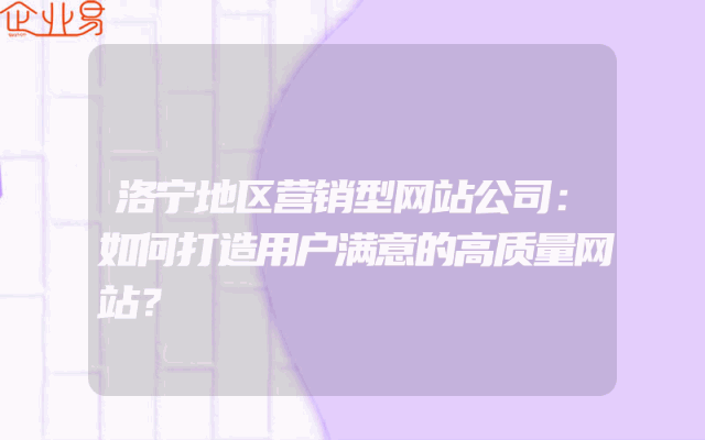 - 洛宁地区营销型网站公司:如何打造用户满意的高质量网站?