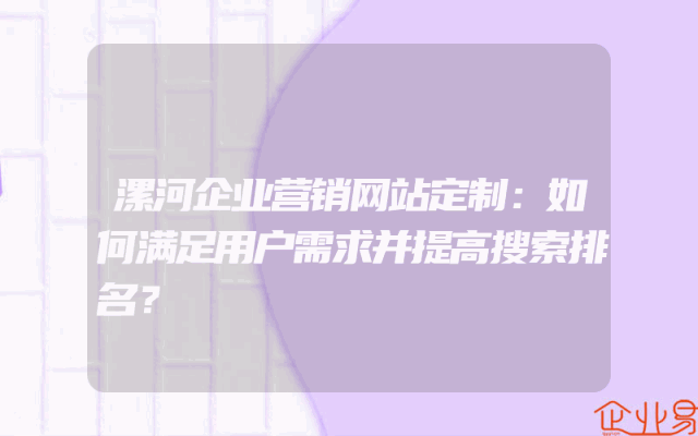 - 漯河企业营销网站定制:如何满足用户需求并提高搜索排名?