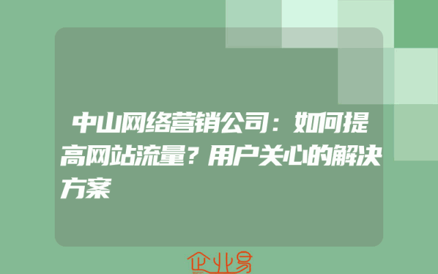 - 中山网络营销公司:如何提高网站流量?用户关心的解决方案