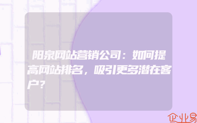 - 阳泉网站营销公司:如何提高网站排名,吸引更多潜在客户?