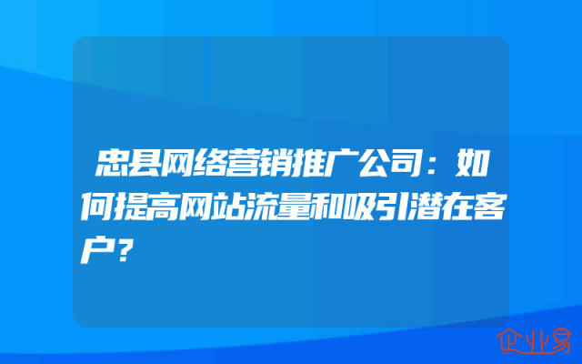 - 忠县网络营销推广公司:如何提高网站流量和吸引潜在客户?