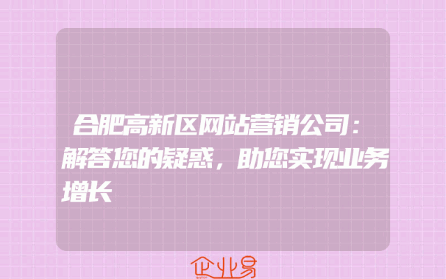 - 合肥高新区网站营销公司:解答您的疑惑,助您实现业务增长