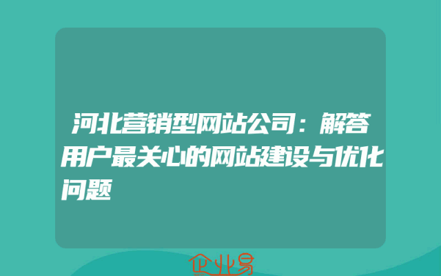 - 河北营销型网站公司:解答用户最关心的网站建设与优化问题