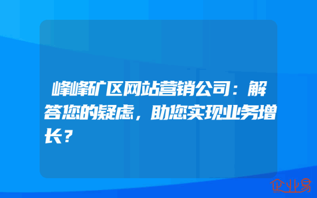 - 峰峰矿区网站营销公司:解答您的疑虑,助您实现业务增长?