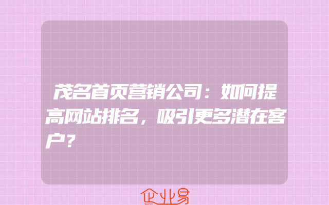 - 茂名首页营销公司:如何提高网站排名,吸引更多潜在客户?