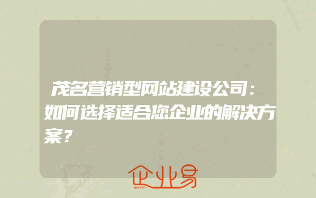 - 茂名营销型网站建设公司:如何选择适合您企业的解决方案?