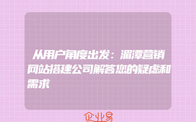 - 从用户角度出发:湄潭营销网站搭建公司解答您的疑虑和需求