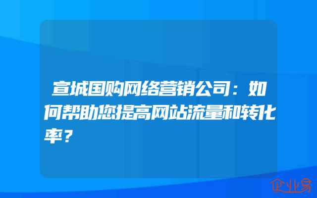 - 宣城国购网络营销公司:如何帮助您提高网站流量和转化率?