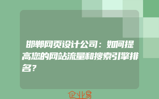 - 邯郸网页设计公司:如何提高您的网站流量和搜索引擎排名?
