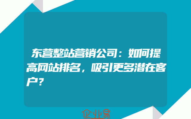 - 东营整站营销公司:如何提高网站排名,吸引更多潜在客户?