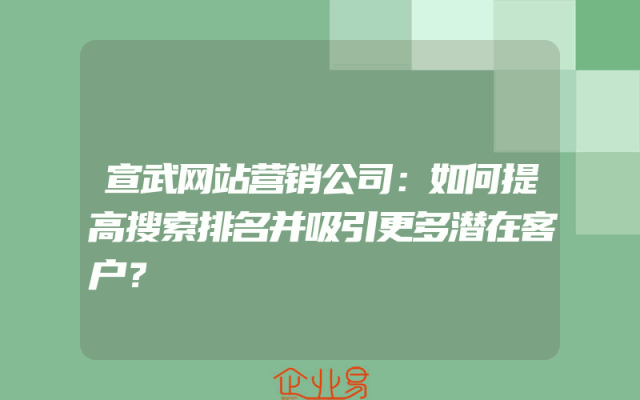 - 宣武网站营销公司:如何提高搜索排名并吸引更多潜在客户?